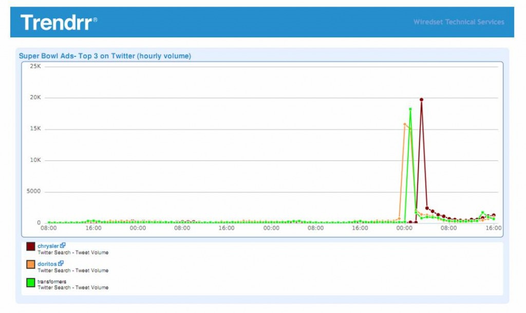 Статистика рекордов Суперкубка-2011Super Bowl XLV набрал рекордное количество зрителей за всю историюСуперкубок по американскому футболу 2011 года стал самым рейтинговым матчем за всю историю телевидения в США. По данным телеканала FOX, на котором проходила трансляция игры, средняя аудитория на время матча составила 111 миллионов телезрителей. 6 февраля 2011 года 71% американцев, сидевших перед телевизором, смотрели футбольный матч. Для сравнения, предыдущий матч Super Bowl XLIV набрал 106,5 миллионов телезрителей, побив рекорд 1983 года. FOX также сообщает, что162,9 миллиона зрителей так или иначе просмотрели хотя бы часть игры. Количество зрителей, просмотревших выступление группы Black Eyes Peas в перерыве между таймами, впервые превысило рекорд 1993 года - тогда на Суперкубке выступал Майкл Джексон. Реакция со стороны соцмедиа Объем онлайн-обсуждений рекламы в первые 12 часов с момента ее выхода в эфир во время матча увеличился на 9% по сравнению с аналогичным периодом за прошлый год, сообщает маркетинговое агентство Zeta Interactive. Больше всего внимания в этот день пользователи уделили игре, рекламе, ошибке Кристины Агилеры, изменившей слова национального гимна США, а также выступлению группы Black Eye Peas. 72% сообщений в блогах, твиттере и соцсетях носили положительный характер. В начале игры в сети количество положительных отзывов достигло 83% (в 2010 году - 79%). По данным медиа-аналитиков из Trendrr, реклама Chrysler ("Detroit/Eminem") стала самой цитируемой в Twitter -19781 твит в течение часа после премьеры. Второе место занял тизер "Трансформеров-3", набравший 18215 твитов в первый час обсуждения. Фан-ролики Doritos набрали 15800 твитов в первый час после показа, и еще 15050 во втором тайме.