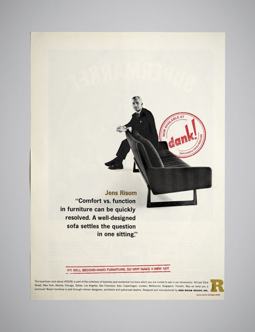 Магазин подержанной мебели усомнился в необходимости новой рекламыНовая рекламная кампания турецкого магазина Dank! использует принты прошлого векаИзвестный турецкий магазин подержанной мебели Dank! и агентство DDB&Co. Istanbul представили новую рекламную кампанию, которая совсем не отличается своей новизной. Рекламисты придумали концепцию, что раз Dank! реализует старую мебель, то компании не нужна новая реклама. Поэтому серия принтов представляет собой подборку старых рекламных плакатов со слоганом "Мы продаем подержанную мебель, так что зачем нам новая реклама?" и ссылкой на современный сайт компании. Состав творческой группы |