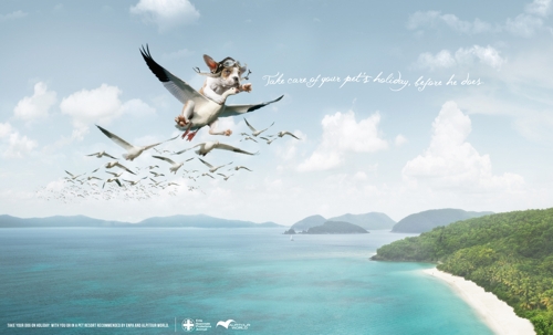 Забота о собаке не даст ей улететь от васРеклама от обществ защиты домашних животных призывает отправить их на специальный курортИтальянские организации по защите животных ENPA и Alpitour World совместно с агентством Saatchi&Saatchi Milan провели рекламную кампанию, призывающую организовать отпуск своим питомцам. Реклама акцентируется на том, что если не заботиться об отдыхе своей собаки, то она попросту может сбежать. При этом кампания направлена и на продвижения специализированных курортов для домашних животных, которые рекомендованы этими организациями.