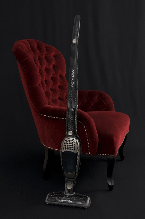 А польский дизайнер Лука Омел превратил новый вертикальный пылесос в настоящее произведение искусства, инкрустировав его 3730 кристаллами CRYSTALLIZED компании Swarovski Elements и продемонстрировав широкой публике на своем показе одежды в Варшаве.