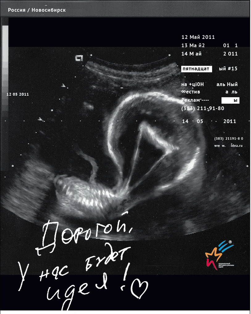 Фирменный стиль фестиваля «Идея»В начале февраля 2011 года креативные директора ведущих рекламных агентств России получили именные приглашения от доктора Филюрина, главврача Национального центра диагностики репродуктивного здоровья российской рекламыИнициатива создания центра и проведения массового УЗИ-исследования принадлежит Михаилу Кудашкину и Дмитрию Яковлеву (Leo Burnett Moscow), которым дирекция фестиваля предложила разработать фирменный стиль "Идеи!2011": "Идея - не фестиваль в Новосибирске, а то неопределимое, что дало ему название - чаще имеет больше одного автора. А еще чаще - двух. Кто-то из них служит питательным бульоном, кто-то - искрой, которая электризует и склеивает вместе коацерватные капли, от которых уже не так далеко до митохондрий и вакуолей. Кто-то сперматозоид, кто-то - яйцеклетка. Кто-то папа, а кто-то... папа (и такое случается). Кто-то копирайтер, а кто-то - арт-директор. В общем, идею рождают два человека, специально уединяющихся, чтобы целиком отдаться процессу, в котором поровну радости и муки. Именно этому аспекту и посвящен наш проект фирменного стиля "Идеи!2011". Главная тема, вокруг которой все вертится и на которую все нанизывается, звучит так: "Дорогой, у нас будет идея!" Дирекция фестиваля уверена, что идей - хороших и разных - за прошедший год родилось немало и готова все, что появились и еще появятся на свет в период с мая 2010 г. по апрель 2011 г., собрать на сайте www.idea.ru и представить для исследования консилиуму ведущих специалистов пренатальной диагностики, по совместительству - членов жюри "Идея!2011". |