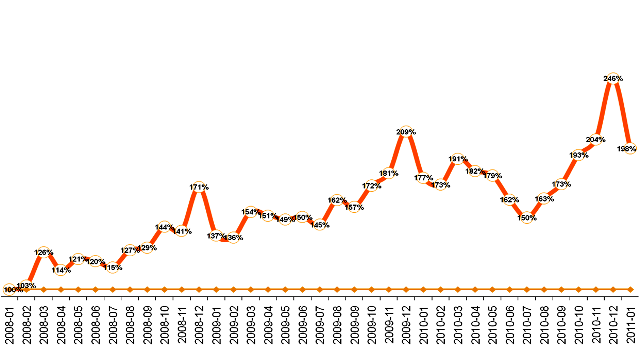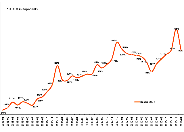 «Тихий» январьРасходы на продукты питания и товары повседневного спроса в январе 2011-го года выросли на 11% по сравнению с январем 2010-го года.Известно, что после «ударного», с точки зрения уровня расходов потребителей декабря, во многих странах, и в России – особенно, в январе из года в год наблюдается существенный спад потребительской активности практически на всех рынках. Не стал исключением и январь 2011-го года. Повседневные расходы россиян сократились на 20% в номинальном выражении по сравнению с декабрем 2010-го года. Но, в сравнении с аналогичным месяцем предыдущего года в январе все же был зафиксирован номинальный рост расходов. По данным исследовательского холдинга Ромир, полученным на основе исследовательской платформы SCIF, расходы россиян на приобретение продуктов питания и товаров повседневного спроса в январе 2011-го года оказались на 11% выше, чем в январе 2010-го года. Однако, с учетом инфляции, которая по продуктам питания превысила 10% в годовом выражении, а по непродовольственным товарам повседневного спроса чуть-чуть не дотянула до 10% можно говорить лишь о сохранении уровня повседневного потребления, достигнутого в начале прошлого года. Здесь будет уместно напомнить, что в январе 2010-го рост номинальных повседневных расходов составил почти 30% по сравнению с январем 2009-го. Т.е. тогда он обогнал инфляцию более чем в два раза. За три года (январь 2011-го к январю 2008-го года) повседневные расходы россиян номинально выросли ровно в два раза (График 1). С поправкой на накопленную за этот период инфляцию рост реальных потребительских расходов на продукты питания и товары повседневного спроса можно оценить в 30-45% за три года. График 1. Динамика средних затрат домохозяйств на товары повседневного спроса. 100% = январь 2008-го года. Источник: Исследовательская платформа SCIF “Ромир” В большей степени нарастили свое повседневное потребление за три года (и в номинальном, и в реальном выражении) наименее обеспеченные россияне. Здесь, с одной стороны, сказался эффект низкой базы, а с другой опережающий рост доходов в результате индексации пенсий с повышения оплаты труда бюджетников, имевшее место в 2009-м и 2010-м годах. В меньшей степени выросли повседневные расходы более обеспеченной группы потребителей («средний+»). В этом случае мы имеем и эффект относительно высокой базы, и эффект «замещения» повседневных расходов крупными покупками, особенно хорошо ставший заметным в середине 2010-го года. Размер среднего чека в январе 2011-го года снизился на 14% по сравнению с декабрем 2010-го. Меньшее снижение среднего чека по сравнению со снижением номинального объема покупок свидетельствует в пользу некоторого сокращения частоты совершения покупок. Очевидно в данном случае имел место эффект праздничной декады в начале января, когда россияне наиболее активно посещали крупные торговые центры, совмещая повседневные покупки с развлечениями. Номинальный размер среднего чека в январе 2011-го вернулся на уровень начала 2010-го года. А по сравнению с январем 2008-го он вырос на 80% (График 2). Интересно, что самые высокие показатели роста среднего чека за три года были зафиксированы в городах с населением около 500 тысяч жителей (+100%), а самые скромные (+64%) – в Москве. В то время как номинальный рост повседневных расходов как раз наоборот самый высокий – в Москве (+104%), а самый ск