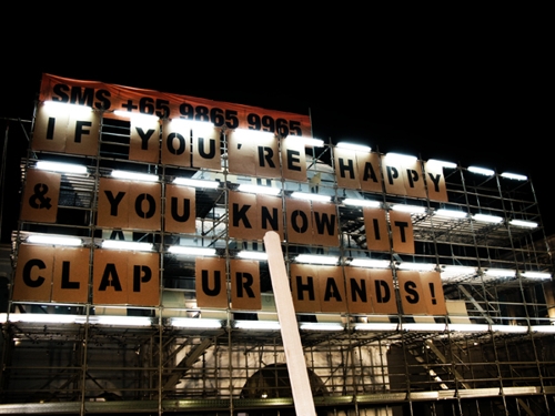 «Самые медленные смс-сообщения» повесили напротив музея искусствВ рамках фестиваля в Сингапуре установлен рекламного щит на всеобщее обозрениеТайский художник Вит Пимканчанапонг разработал концепцию World's Slowest SMS Billboard (Самые медленные смс в мире) в рамках ежегодного Night Festival. На территории Сингапурского музея искусства размещен огромный интерактивный билборд, на котором раз в 20 минут обновляются смс-сообщения. Команда из десяти человек получает текстовые сообщения от посетителей музея и затем уже вешает гигантские буквы на щит. Весь процесс занимает 20 минут. Причем, только самые оригинальные и смешные смски имеют шанс попасть на всеобщее обозрение. С 2006 года, "World's Slowest SMS Billboard" использовался, как публичный мессадж для музыкального мероприятия под названия Fat Festival, ежегодно проходившего в Бангкоке с 2002 года.