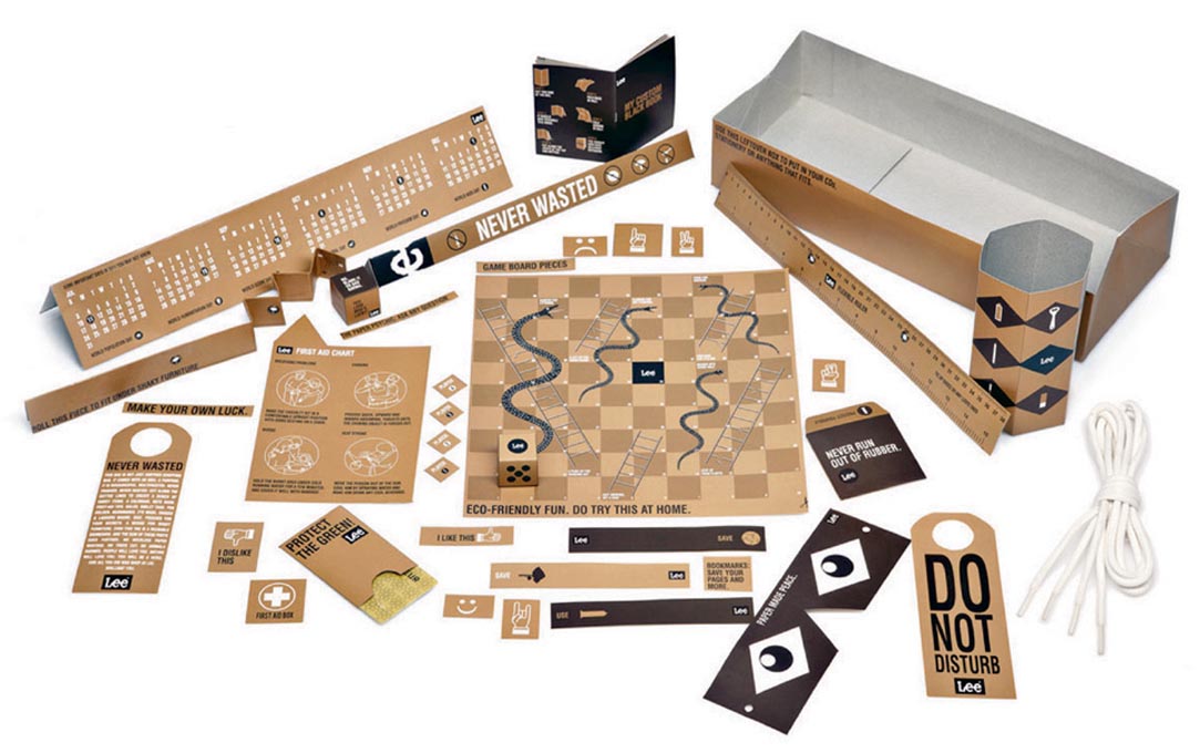 Особая развлекательная упаковка джинсов LeeДжинсы Lee совместили экологичность с развлечениемАгентство HappyCreativeServices из Бангалора создало уникальную развлекательную и экологичную упаковку для джинсовой компании Lee. С ее помощью Leeхотят показать, что они весьма заинтересованы в экологически чистом производстве и снижению уровня загрязнения окружающей среды. Новинка представляет собой картонный упаковочный пакет, который легко превращается во множество интересных вещей: настольную игру, линейку, календарь, конверт и даже таблички "Не беспокоить" на дверь. При этом эко-упаковка также несет и просветительскую роль, рассказывая о необходимости защиты экологии планеты. Состав творческой группы Agency: Happy Creative Services, BangaloreCreative Director: Praveen Das, Kartik Iyer Art Director: Viduthalai Raj Copywriter: Athul Designer: Viduthalai Raj Illustrator: Vinayachandran Sr. Account Executive: Neelima Kariappa. Studio: Rama Krishna