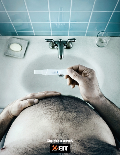 Беременных мужчин не бываетРеклама фитнес зала X-Fit призывает не обманывать самого себяКанадское агентство Bleublancrouge выпустило остроумную рекламную кампанию для сети фитнес залов X-Fit. Рекламисты придумали интересную коммуникацию, чтобы заставить располневших мужчин заняться собой. Принты кампнаии изображают мужчину с большим животом, который проверяет, не забеременел ли он, используя для этого стандартный домашний тест и даже посещая кабинет УЗИ. Но реклама просит прекратить себя обманывать и вместо подобных глупостей пойти и записаться в зал X-Fit, чтобы избавиться от бремени лишнего веса.