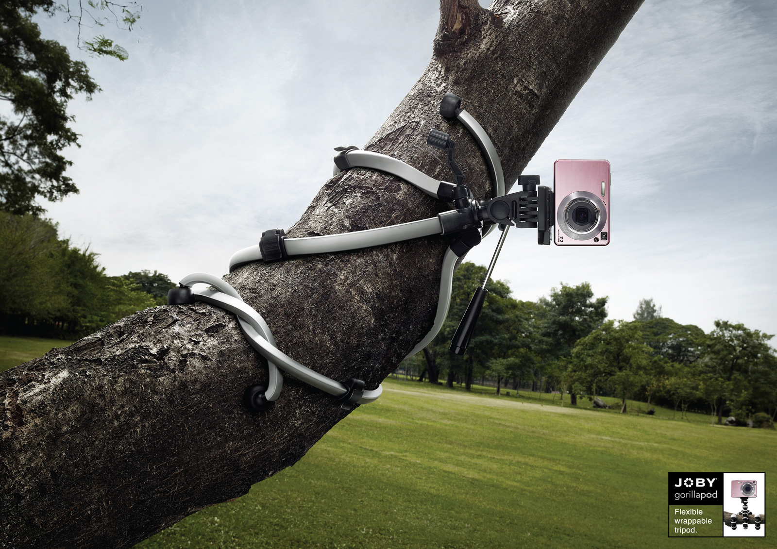 Мертвая хватка инновационного штатива JobyРеклама нового гибкого штатива Joby GorillapodКомпания Joby появилась на рынке всего несколько лет назад, основная сфера ее деятельности - это выпуск необычных подставок, которые могут изгибаться самым невероятным образом. Теперь Joby начали производить аналогичные штативы для фотокамер под названием Gorillapod, которые можно зафиксировать, буквально обернув вокруг дерева. Именно на это и делает упор рекламная кампания от бахрейнского агентства FP7/BAH. Хотя странно, что в рекламе креаторы решили изобразить стандартные фотоштативы, завязанные узлом, а не оригинальные Joby Gorillapod, которые внешне весьма отличаются от привычных всем. Состав творческой группы |