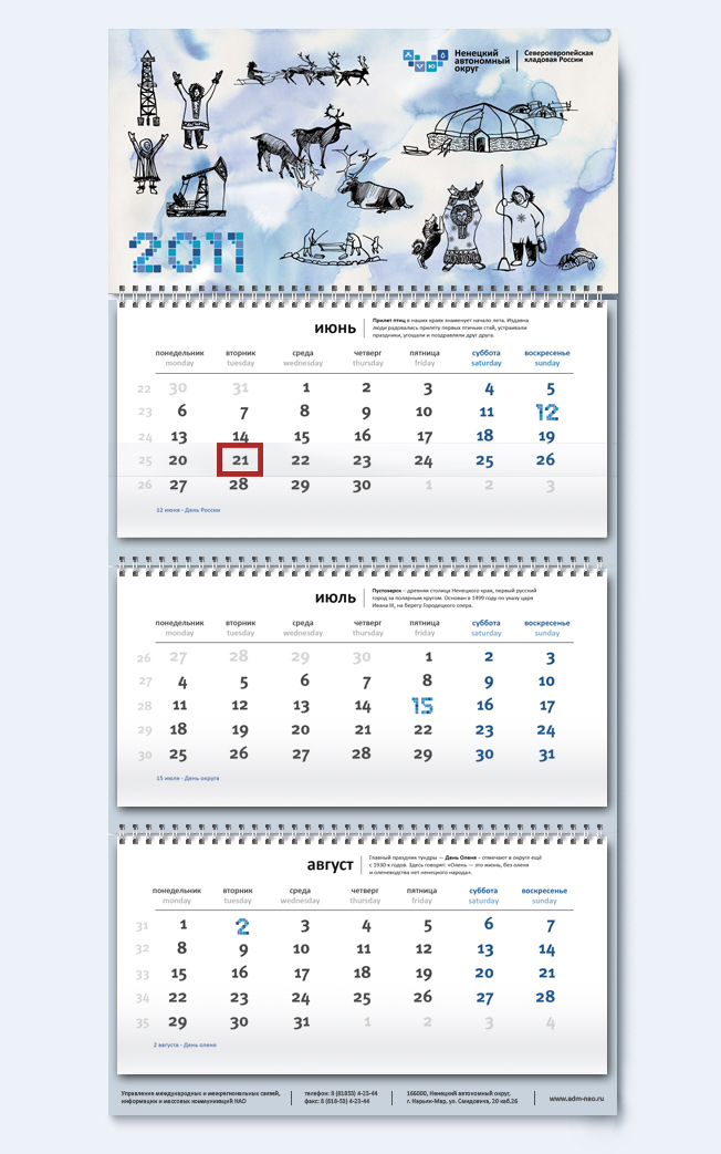 Ненецкий автономный округ обрел фирменный стильКомпания Notamedia провела проект по ребрендингу Ненецкого автономного округа (НАО). Это один и первых примеров комплексного территориального брендинга в нашей странеРабота над новым имиджем округа началась с аудита существующего бренда и ряда исследований, касающихся восприятия и отношения к региону со стороны целевых групп. С учетом приоритетов и стоящих перед администрацией задач была разработана концепция нового бренда НАО, как североевропейской кладовой России. Подобное определение, считают в агентстве, подчеркивает его северное (в отличие от республики Коми) и европейское (в отличие от Ямало-Ненецкого АО) положение, наличие больших и стратегически важных запасов и ресурсов полезных ископаемых (в отличие от всех конкурирующих регионов). По замыслу разработчиков новый бренд должен дифференцировать НАО по отношению к конкурентам, способствовать притоку новых жителей и инвестиций. Символика Ненецкого автономного округа до ребрендинга состояла из традиционных геральдических символов – герба и флага. Для более эффективного донесения характеристик нового бренда был разработан логотип региона, в основу которого легли приоритетные направления работы администрации – люди, олени, рыба, нефть. Они были визуализированы в виде иконок, стилистика которых сохраняет преемственность геральдических символов и национального узора. Цветовое маркирование различными оттенками синего отражает особенности территории: низкая температура, вода, небо, снег, северное сияние. Цвет каждого квадрата соотносится с изображенным знаком: голубой цвет неба – с иконкой национального жилища (люди), серый – рога оленя, зеленоватый аквамарин – рыба и морепродукты, максимально темный синий – нефть. Форма логотипа одновременно напоминает территорию округа, национальный узор, рога оленя, летящую птицу. Элементы логотипа представляют собой своеобразный конструктор. Из них можно выложить любую форму в виде мозаики с требуемым информационным посылом. На основе данного логотипа был разработан комплект фирменного стиля региона, который включает в себя набор открыток ко всем официальным праздникам, персональное приглашение, настенный календарь, конверты и поздравительный адрес. Также в рамках проекта была разработана стратегия по продвижению региона и взаимодействию его бренда со всеми основными целевыми группами. Основной аудиторией, на которую направлен бренд, являются инвесторы. Для них был составлен инвестиционный паспорт и каталог инвестиционных предложений округа. Эта информация послужила основой для нового сайта инвестиционных предложений Ненецкого автономного округа. В результате работы Администрация Ненецкого автономного округа получила брендбук, содержащий описание концепции бренда и его платформы, гайдлайн по логотипу и фирменному стилю, а также описание стратегии развития бренда. В последние годы создание логотипов и фирменного стиля для городов и регионов стало тенденцией. Так, совсем Студия Артемия Лебедева создала фирменный стиль Калужской области. Логотипы других российских городов можно посмотреть здесь. |
