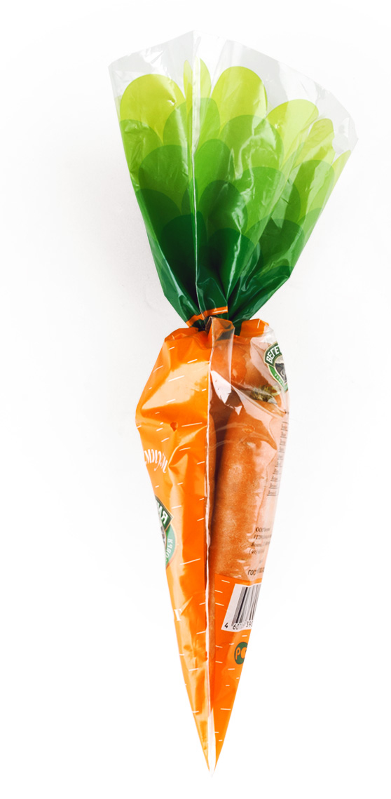 Упаковка в форме овоща для морковкиВ дизайн-студии Just be nice разработали упаковку морковки марки «Премиум» бренда «Вегетория»Теперь, по мнению дизайнеров, форма упаковки полностью отражает содержание. Кроме того, упаковка имеет прозрачное окошко для оценки продукта и даже издалека можно понять, что представляет ее содержимое.