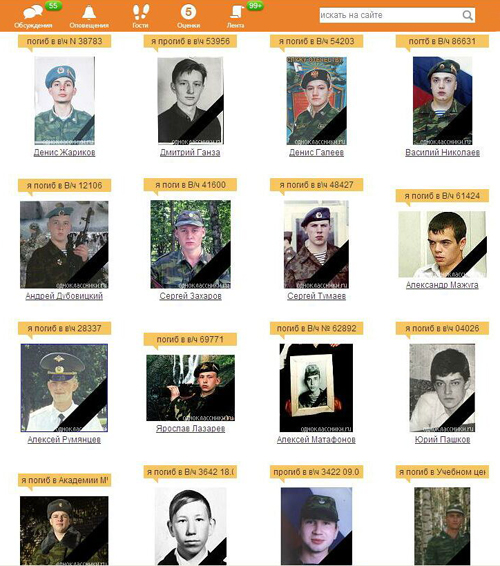 Матери убитых солдат продолжат размещение некрологов в «Одноклассниках»Фонд "Право матери" собрал воедино аккаунты умерших военнослужащихВ конце прошлого месяца на странице фонда были опубликованы 30 портретов погибших в мирное время от издевательств сослуживцев военнослужащих и их историй, рассказанных от первого лица. Вот только одна из них: «Марат Гизатуллин. Я погиб в в/ч 41450, ВДВ. О себе: г. Нефтекамск, Рес. Башкортостан. Учеба: СПТУ №138. Я был призван в армию 29 мая 2005 г. После 7 месяцев службы моим родителям сообщили, что я исчез из части, но никто не мог сказать точной даты моего «исчезновения». Говорили, что это произошло в период с 9 по 13 января 2006 года. Мой отец приехал в Рязань, где я служил, и в течение трех недель искал меня. Должностные лица части в поисках ему не помогали. Отец расклеил мои фотографии по городу, дал объявления в местные СМИ. Безуспешно. Уехал домой ни с чем. А 12 апреля 2006 г. в военкомат из части пришло сообщение, что накануне я найден висящим в петле недалеко от части. Родители вскрыли гроб, прибывший из части, и пришли в шоковое состояние — они увидели, что я жестоко избит. Они смогли опознать меня лишь по особым приметам… Мой младший брат Вадим после моей гибели поседел за несколько дней в свои 17 лет». По словам организаторов акции, каждая из записей сделана по результатам судебных решений и все факты — доказаны. Всего же по статистике Фонда за двадцать один год в различных армейских частях фактически были убиты около восьмидесяти тысяч человек. Именно столько семей военнослужащих обратилось в Фонд за эти годы. Фонд «Право Матери» – негосударственная некоммерческая общественная организация, занимающаяся защитой прав родителей, чьи сыновья погибли в армии в мирное время на территории России и СНГ. |