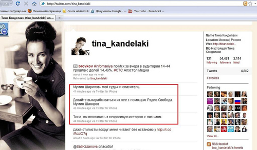 Тина Канделаки неудачно развязала войну против Радио СвободыВместо объяснения по поводу "Письма 55", телеведущая обвинила журналиста радиостанции во взломе ее Twitter-аккаунтаВокруг известной телеведущей Тины Канделаки разразился нешуточный скандал. Сначала она обвинила журналиста Радио Свобода во взломе ее аккаунта в Twitter, а затем публично извинилась. Ее оппоненты считают, что Канделаки просто не хочет комментировать свою подпись под "Письмом 55" или попросту не умеет пользоваться собственным iPhone. Напомним, Тина Канделаки является одним из подписантов письма в поддержку приговора Михаилу Ходорковскому. В связи с этим журналист Радио Свобода Мумин Шакиров попросил дать комментарий, однако так его и не получил. Через некоторое время в ЖЖ Канделаки появилась запись, обвиняющая Шакирова в том, что он взломал Twitter-аккаунт телеведущей. "Журналист Мумин Шакиров, не получив моего комментария по поводу письма, решил обратиться ко мне напрямую и взломал мой аккаунт в Твиттере. Хорошие методы работы у Мумина Шакирова и радио "Свобода". Вот так осуждая действия провластных организаций, представитель "независимой" радиостанции пошел еще дальше всеми ненавистной "ликующей гопоты". Это подсудное дело, пишу заявление в правоохранительные органы", - написала Канделаки на своей странице в LiveJournal. Мгновенно разразившийся скандал и острая реакция Радио Свобода вынудили телеведущую извиниться за поспешные выводы. "В связи с разгорающимся скандалом хотела бы принести свои извинения журналисту Мумину Шакирову за то, что поспешила обвинить его во взломе моего аккаунта в Твиттере до того, как чья-либо вина была на сто процентов доказана. В скандале участвовать не хочу, на это нет ни желания, ни времени. А в ситуации со взломом моего твиттера я буду разбираться", - сообщила Канделаки. Радио Свободы и Мумин Шакиров не намерены прощать Канделаки ее слова, тем более, что телеведущая и член Общественной палаты так и не извинилась непосредственно перед радиостанцией. "Обвинения Канделаки основаны на том, что днем в пятницу, 4 марта, в ее микроблоге появились несколько записей от лица журналиста РС, абсолютно совпадающие с приведенными выше SMS-сообщениями. Судя по всему, Канделаки сама случайно отправила SMS- сообщения в Twitter, что в общем случается с владельцами iPhone. Однако, заметим, что телеведущая публично обвинила корреспондента РС в уголовном преступлении, что, безусловно, станет предметом пристального внимания со стороны юристов РС", - прокомментировал ситуацию Мумин Шакиров. |