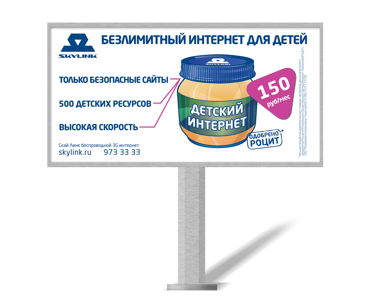 «Рекламные снайперы» поместили Интернет от «Скай линк» в банкуОператор мобильной связи "Скай Линк" начал рекламную кампанию по продвижению "Детского интернета" в Москве"Детский интернет" - специализированное решение для мобильного интернет-доступа, защищенного от противоправного и негативного контента, адресованное двум возрастным группам: детям с 6 до 10 лет и с 6 до 14 лет. Все WEB-ресурсы, к которым предоставляется доступ пользователям, проходят экспертизу контента РОЦИТ и Центра безопасного интернета в России. Список сайтов является открытым, постоянно пополняется и на сегодняшний день включает 500 сайтов, сгруппированных по шести разделам в зависимости от тематики. Креативная концепция рекламной кампании разработана агентством "Рекламные снайперы". Размещение наружной рекламы - АПР-Евразия. В качестве рекламных носителей задействована наружная реклама (основной формат - щиты 6х3 м). "Образ детского питания появился сразу. Такой продукт создается специально для детей и является максимально полезным и безопасным для ребенка, как и тариф "Детский Интернет", - комментирует креативный директор агентства "Рекламные снайперы" Роман Мамаев. По различным оценкам, несовершеннолетняя аудитория сети интернет в России составляет в настоящее время, 10-12 млн. пользователей. Это примерно четверть общей интернет-аудитории России. Эта категория пользователей находится в зоне особого риска воздействия контента или совершаемых через интернет действий, которые могут быть отнесены к негативным и/или противоправным. При этом около 40% детей, регулярно посещающих Сеть, просматривают интернет-сайты с агрессивным и нелегальным контентом, подвергаются киберпреследованиям и виртуальным домогательствам*. "Детский интернет" доступен пользователям в виде тарифа, тарифных опций и коробочного комплекта и открыт для подключения в Московском и Северо-Западном регионе, а также Калуге, Кемерово, Кирове, Краснодарском крае, Нижегородской области, Новосибирской области, Омске, Удмуртской республике, Ульяновске и Хабаровске. Более подробную информацию о "Детском интернете" и других контент-тарифах "Скай Линк" можно найти на сайте www.skylink.ru и www.скайлинк.рф. "Мы считаем, что забота о безопасном интернете для детей - это такой же предмет первой необходимости, как и правильное питание. Оградить своего ребенка от вредного контента можно, не стоя у него за спиной. Для этого требуется лишь ответственная позиция родителей и общества, - говорит Гульнара Хасьянова, генеральный директор "Скай Линк". - Используя контент-биллинг, мы уже более двух лет работаем по "белым" спискам, и по мере формирования общероссийского "детского" списка интернет-ресурсов "Скай Линк" готов обеспечить к нему доступ мобильных пользователей, так как все необходимые технологические решения есть и уже опробованы".