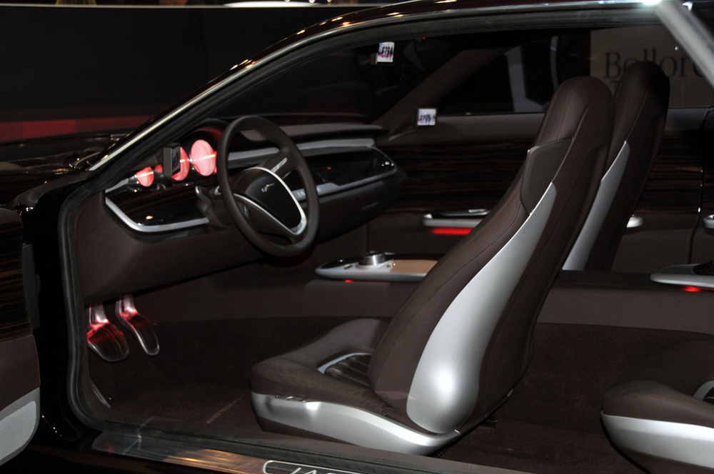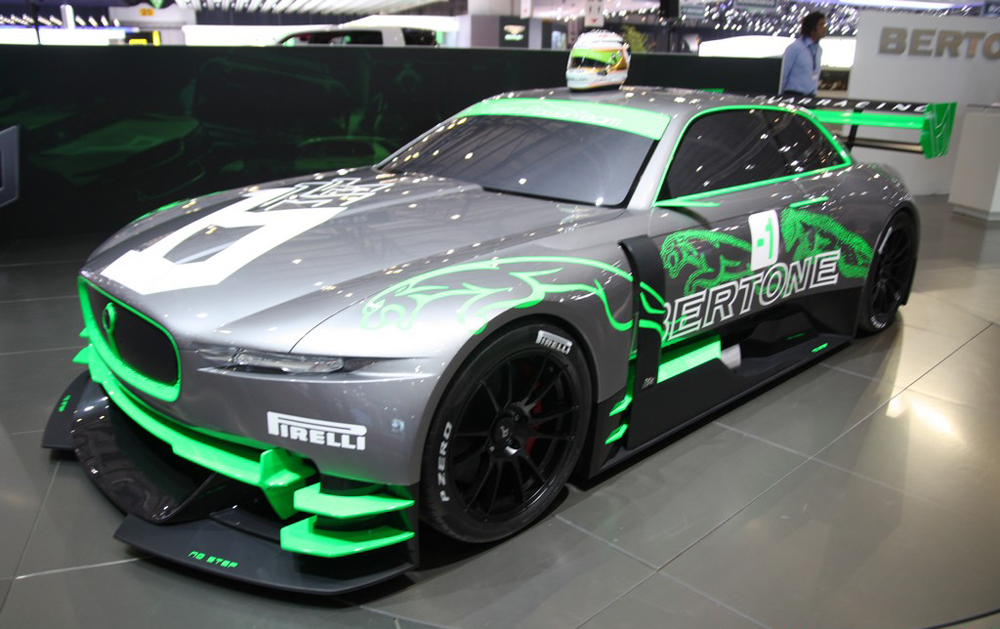 Jaguar XKR-S Необычный концепт-кар представило кузовное ателье Bertone на Женевском автосалоне 201. Это Jaguar B99, который выглядит как нечто среднее между концептом Ford Interceptor 2007 года и предыдущим поколением Ягуара XJ. Машина длиной 4,5 метра отличается агрессивной передней частью со смелой решеткой радиатора, низкой крышей, распашными дверями без центральной стойки и многочисленным хромированным декором. Интерьер концепта выполнен в минималистичном стиле с отсутствующей центральной консолью, но с торпедо, которое тянется через весь салон. Отделка выполнена из натурального дерева и вставками из алюминия. Jaguar B99 Concept оснащен гибридной силовой установкой, основную роль в которой играют два электромотора суммарной мощностью в 578 л.с., питающиеся от литий-ионных аккумуляторов. На электротяге концепт способен преодолеть сто километров, после чего в дело вступает ДВС, спецификация на который не раскрывается. Силовой агрегат выступает в качестве генератора и позволяет увеличить пробег до приличных 700 километров.
