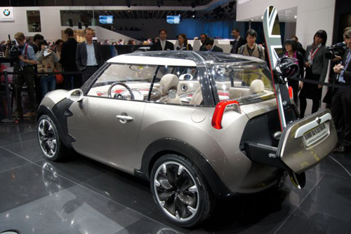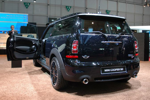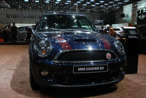Jaguar B99 Concept На стенде компании также выставили гоночный вариант концепта, получивший название B99 GT Concept. Он отличается более широким кузовом, огромным задним антикрылом, совершенно безумного размера диффузором и сложным передним бампером. В широкие боковые пороги концепта выведены патрубки выпусной системы, а завершают картину раскраска кузова и большие 19-дюймовые легкосплавные диски, "обутые" в низкопрофильную гоночную резину Pirelli PZero. В движение гоночная версия Jaguar B99 GT Concept приводится уже от четырех электромоторов суммарной отдачей в 986 л.с Компания MINI представила новый концептуальный автомобиль - самую маленькую трехдверную машину в своем модельном ряду. Длина нового концепт-кара составит 3,4 метра. Модель получит посадочную формулу 3+1 - такую же, как у компактного городского автомобиля Toyota iQ, а также ряд нововведений в плане мер по снижению массы и использованию новых технологий, которые появятся у машин MINI следующего поколения. Вся модельная линейка автомобилей MINI получила совершенно новый дизельный силовой агрегат объемом 2,0 литра и выдающий 143 л.с. (305 Нм). Оснащенные новым дизелем MINI обзавелись приставкой SD в названии. В паре с новым 2,0-литровым дизелем агрегатируется новая шестуступенчатая механическая коробка передач, но в качестве опции осталась возможность заказать и автоматическую трансмиссию. По словам представителей компании, MINI Cooper SD с новым двигателем может набирать сотню за 8,1 секунды, а его максимальная скорость составит 215 км/ч. Расход топлива при этом сократится до 4,3 литров на сто километров. Новый дизельный мотор можно будет заказать также для растянутого Cooper Clubman, кабриолета MINI Convertible и кроссоверов Countryman и Countryman ALL4. MINI Cooper SD Clubman