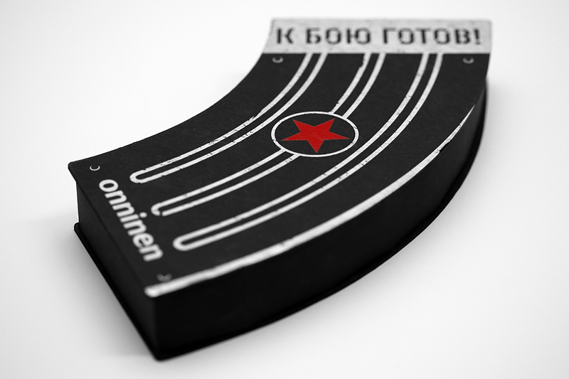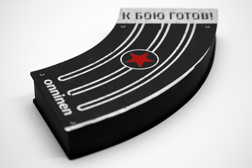 Great на 23 февраля напомнил мужчинам, как собирать автоматДизайн-студия Great придумала, а типография Great Print произвела подарок к 23 февраля для друзей и партнёров ООО "Onninen". Рожок от автомата заряжен патронами с боевым духом. Перед тем, как расстрелять весь боезапас, можно потренироваться в выполнении норматива по сборке-разборке оружия. Состав творческой группы