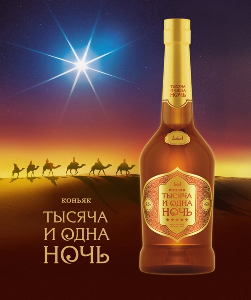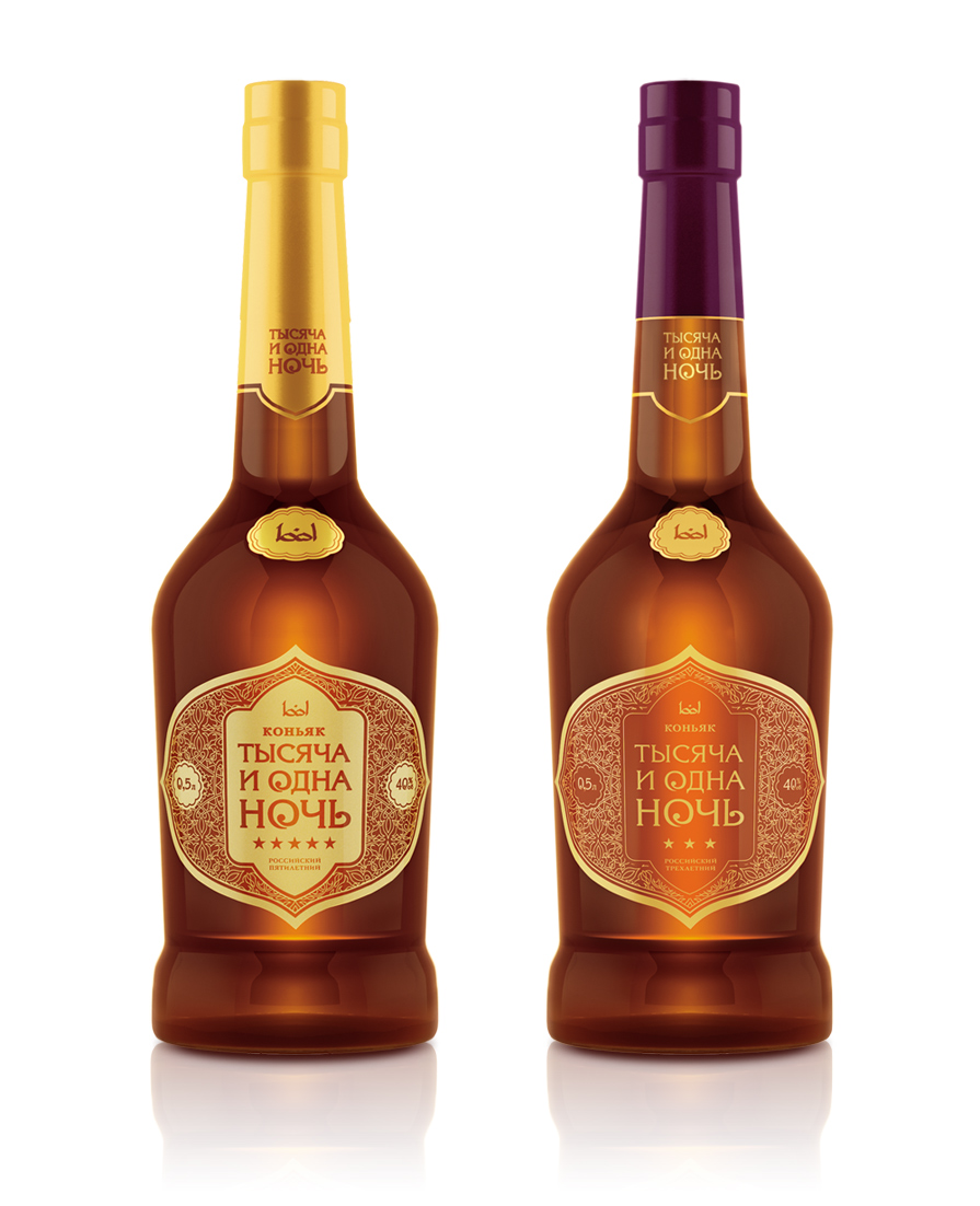 DDC Creative Lab: дизайн коньяка «1001 ночь»Агентство DDC Creative Lab разработало для компании "Сомелье" дизайн ординарных 3- и 5-летних коньяков под торговой маркой "1001 ночь".Основными элементами оформления стали фирменный знак "1001" с имитацией арабской вязи и этикетка характерной формы, с восточным узором и начертанием названия. Продажи коньяков "1001 ночь" начались во втором полугодии 2010 в основных федеральных торгово-розничных сетях России. Состав творческой группы