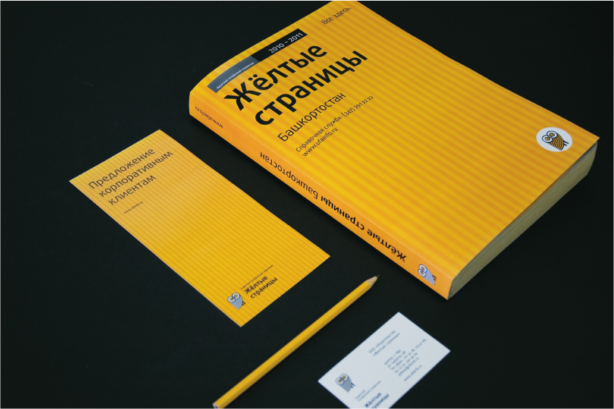 «Желтые страницы» Татарстана - в дизайне от Paradox BoxВ студии Paradox Box сделана айдентика для издательства "Жёлтые страницы. Башкортостан".В качестве знака использована стилизованная сова, как символ знания и владения информацией. Также разработан слоган и фирменный персонаж, который помогает идентифицировать бренд и превращает поиск информации в увлекательное мероприятие. Состав творческой группы