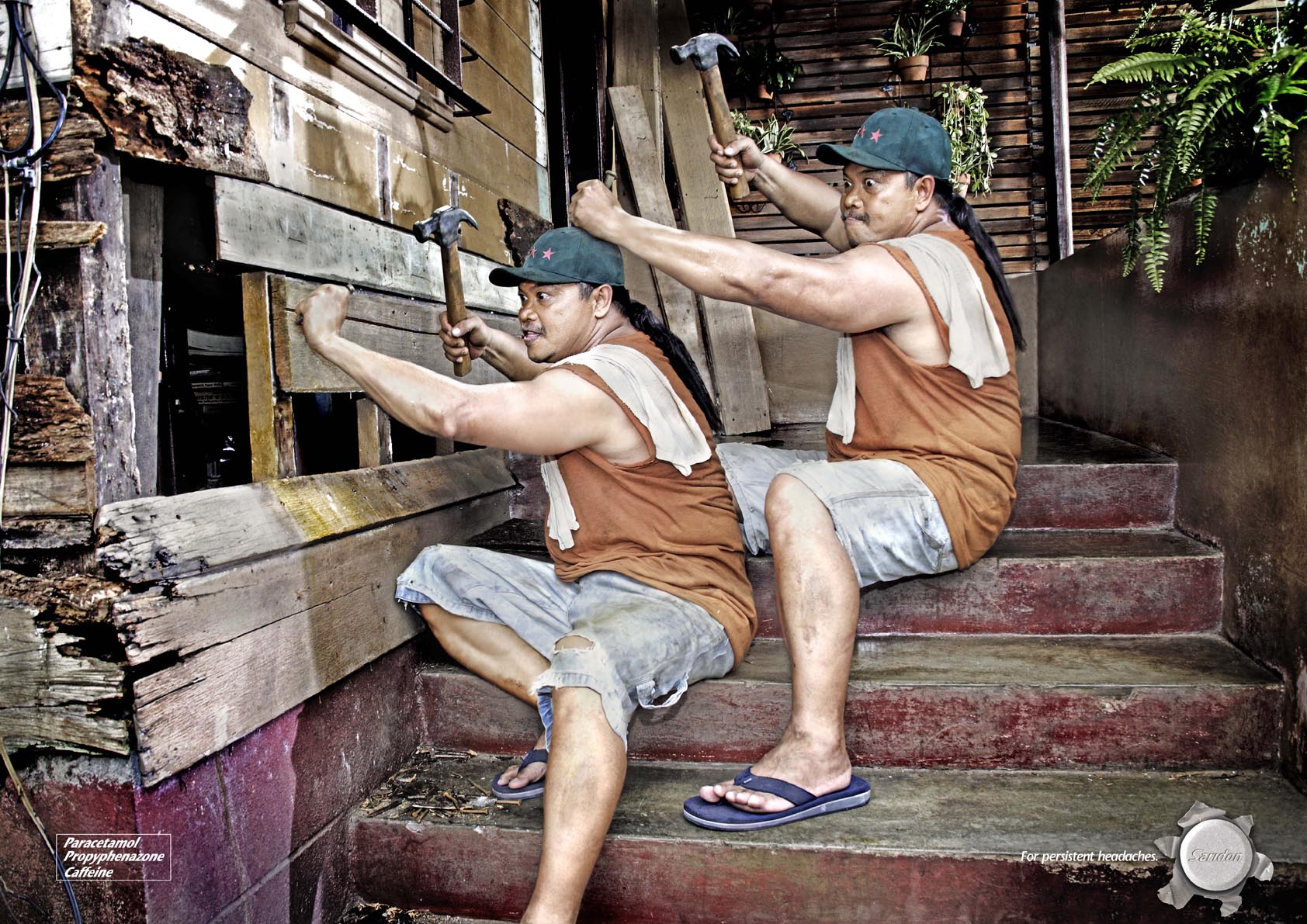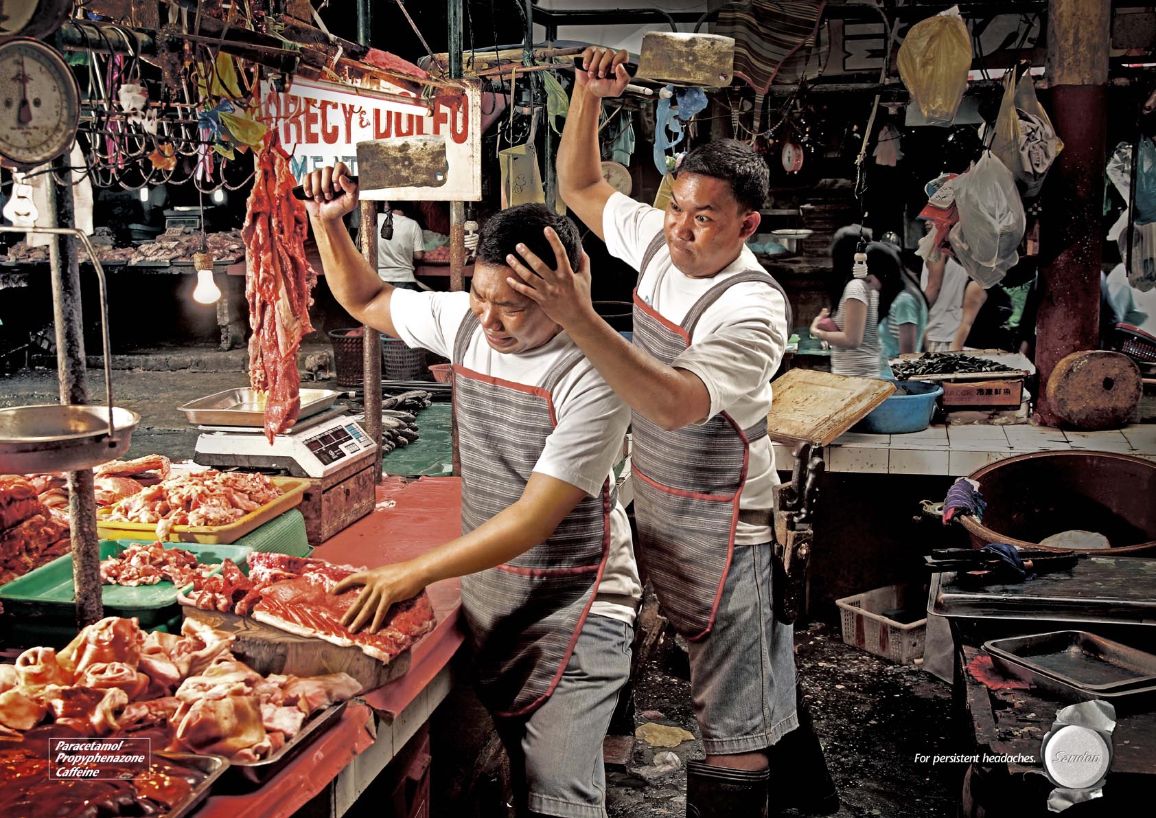 Saridon не даст забить себяРеклама популярного в Азии средства от головной болиФилиппинское BBDO Guerrero/ Proximity выпустило очередную рекламу популярного в стране средства от головной боли Saridon, которое по утверждению компании-производителя Bayer устраняет даже самое сильное недомогание всего за 15 минут. Серия принтов агентства подчеркивает, что Saridon отлично справится с головной болью, которая преследует людей постоянно и возникает непосредственно от их деятельности. Поэтому рекламисты изобразили на плакатах двойников, бьющих свои оригиналы по голове. Летом это же агентство провело интересную акцию, которая повысила популярность Saridon в Филиппинах и увеличила продажи лекарства на 25% за 2 месяца. Для этого креаторы прилюдно создали рекламный билборд всего за 15 минут.