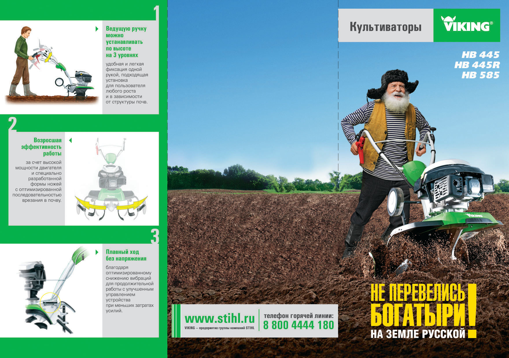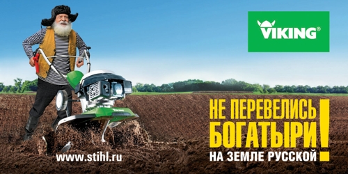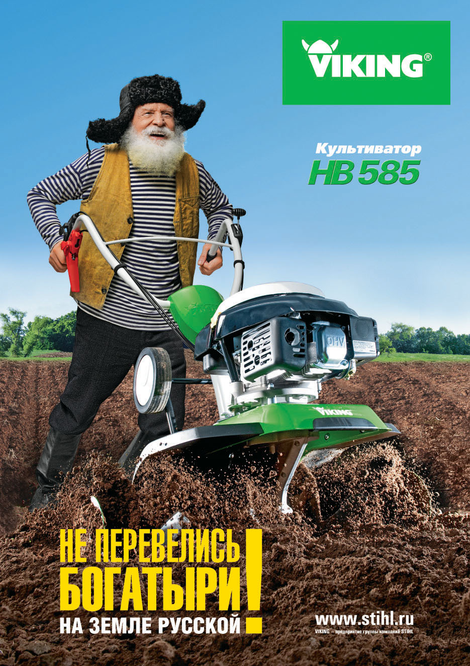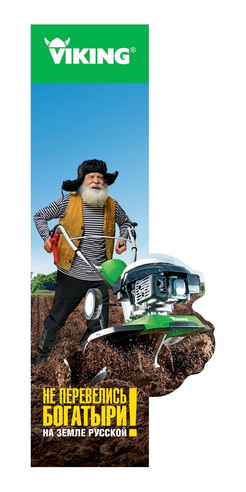 Пенсионеры рекомендуют! Работа агентства «Икраткое»Креативное рекламное агентство "Икраткое" закончило работу над креативной концепцией для компании VIKING, занимающейся производством садовой техники.Целью агентства было преподнести потенциальному покупателю уникальные свойства культиватора VIKING - простоту в управлении, мощность и продуктивность. Преимущества культиватора показаны через легкость управления мощной и высокотехнологичной машиной, с которой без проблем справляется даже пожилой человек, не обладающий большой физической силой. Культиватор сам делает всю работу - а тому, кто им управляет, остается только получать удовольствие и испытывать азарт от процесса. Разработанная концепция была транслирована на несколько видов носителей: хард-постер, плакат, щит 3x6, буклет и flash-баннер. Состав творческой группы
