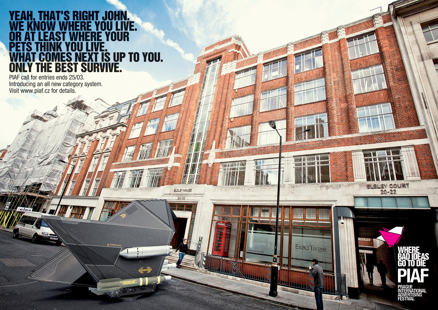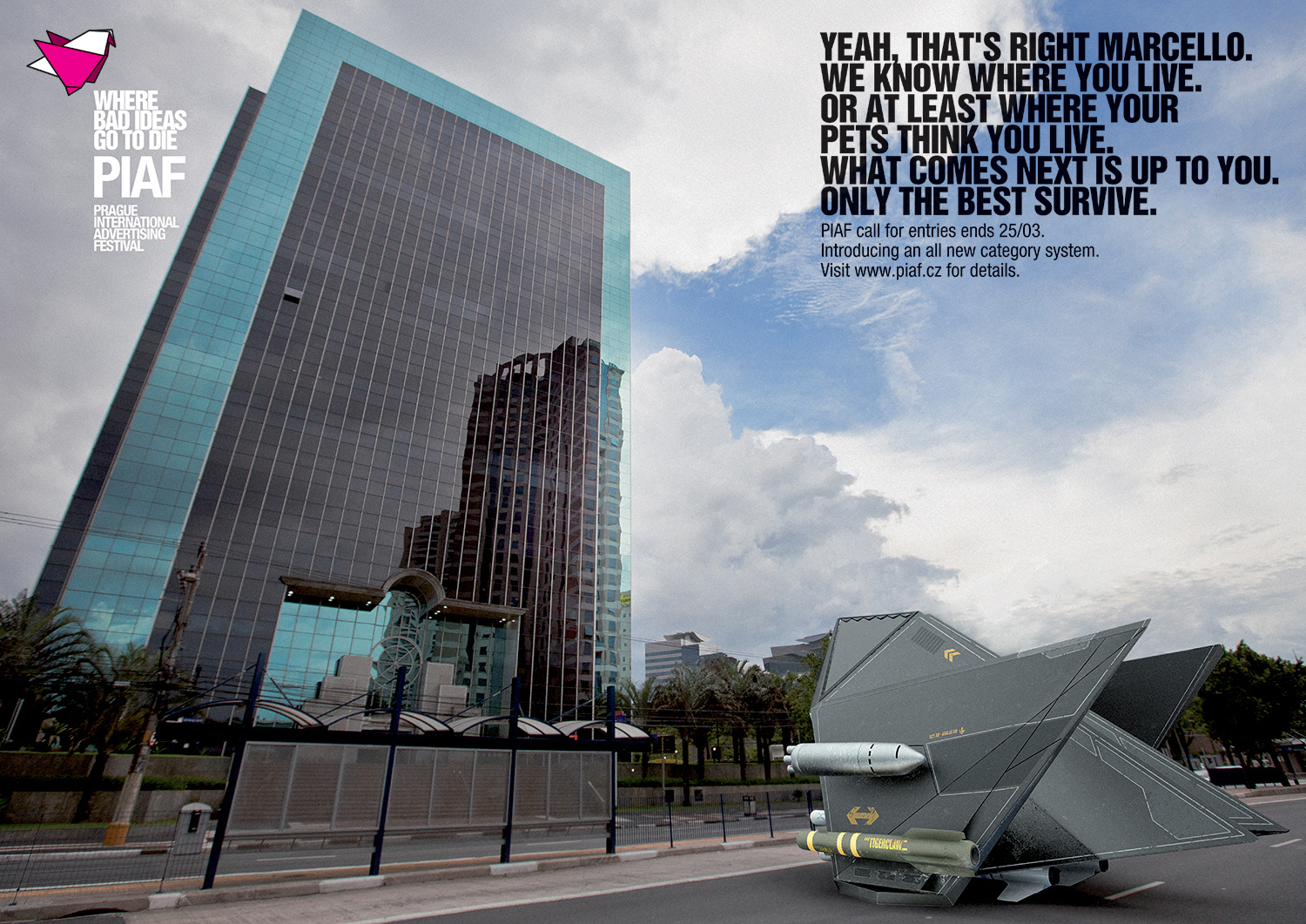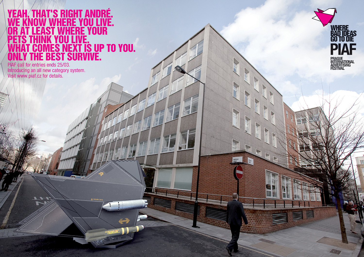 Y&RPrague разработало интересную кампанию для привлечения внимания к Пражскому международному рекламному фестивалю PIAF-2011. Креаторы создали серию постеров, отправив их персонально различным креативным директорам рекламных агентств по всему миру: в Барселону, Лондон, Нью-Йорк, Париж и Сан-Паулу.