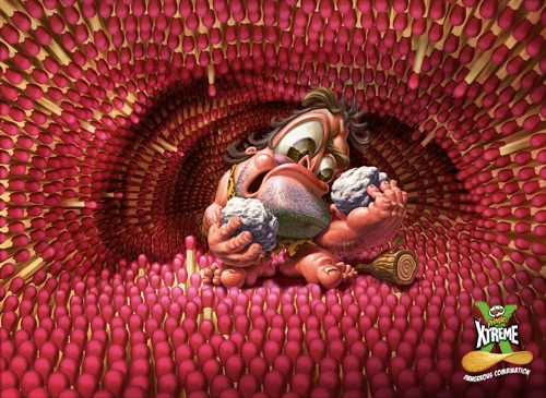 Чипсы Pringles переполнены экстримомРеклама Pringles Extreme сравнивает продукт с чрезвычайно опасными ситуациямиЧилийское Grey Santiago выпустила несколько принтов для чипсов Pringles Extreme, которые отличаются остротой и необычными вкусовыми комбинациями вроде сыра и перца чили. Чтобы показать, что чипсы по-настоящему экстремальны и потребителям стоит быть готовыми к тому, что они получат, рекламисты изобразили несколько крайне опасных ситуаций. В одном случае изображен пещерный человек с кресалом в странном помещении, сделанном из спичек, а в другом - дракон с аллергией на сено в сарае, доверху заполненным этим самым сеном. Каждый принт отлично передает "опасность", которой Pringles Extreme подвергает своих потребителей. Состав творческой группы |