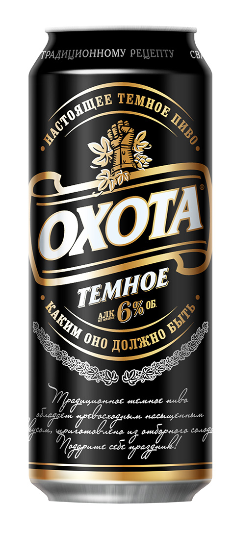 «Охота Темное» сварено по традиционному рецепту из натуральных ингредиентов. Пиво имеет бархатный вкус с нотками поджаренного солода и приятное насыщенное послевкусие. Сочетание бархатно-черного и золотого цвета в дизайне призваны создать ассоциацию с благородностью и премиальным качеством напитка. Расширение линейки бренда «Охота» основано на стремлении компании предложить своим потребителям уникальный, востребованный продукт.