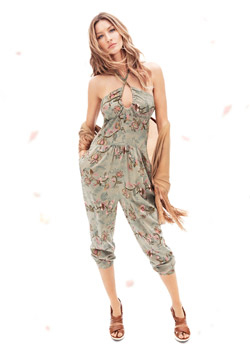 Фотографии выполнены в винтажном стиле 70х годов. Фотограф Дэниел Джексон создал романтический и чуткий образ Жизель, которая представила удобные комбинезоны, топы и сарафаны из легких тканей с цветочным принтом.