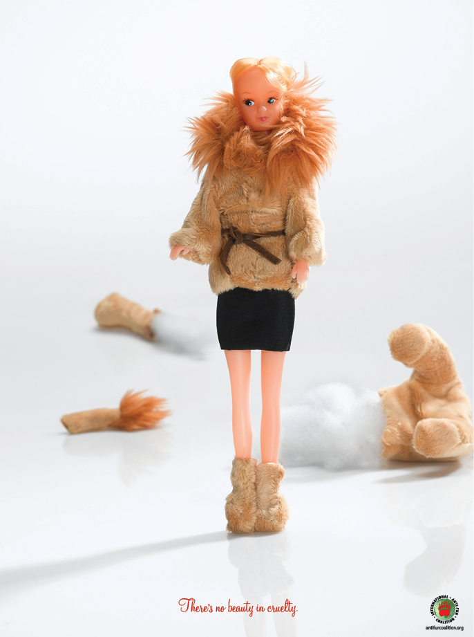 С помощью детских игрушек показали жестокость к животнымКампания Международного объединения против мехаРазличные природоохранные организации и борцы за права животных часто используют социальную рекламу для привлечения внимания к своей деятельности. Новая кампании Международного объединения против меха, которое выступает против меховой одежды, использует детские игрушки для демонстрации того, насколько ужасно убивать животных ради шубы. Серия принтов от израильского Draftfcb+ Shimoni Finkelstein Barki изображает нескольких кукол, которым сделали красивые шубки. Для этого несколько плюшевых зверушек, среди которых присутствуют панда, полярный медведь и лев, буквально были растерзаны. Слоган кампании пытается людей заставить задуматься об оборотной стороне красивой одежды: "Нет ничего красивого в жестокости" Состав творческой группы |