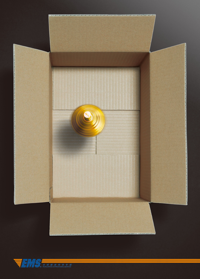 EMSдоставит посылку, пока внутри крутится юлаПродолжение рекламной кампании от Strange Idea AdПекинское агентство StrangeIdeaAd дополнило свою рекламную кампанию для почтовой службы EMS несколькими принтами. Как и прежде рекламное сообщение строится на том, что доставка будет осуществлена нереально быстро. Для отражения этого креаторы изобразили внутри посылки юлу, которая продолжает крутиться и после доставки, а также падающие костяшки домино, которые также не успели упасть. Идея рекламы, безусловно, хороша, однако агентство слишком активно подчеркивает скорость и исполнительность EMS, перешагивая за рамки реальности так, что при желании можно обвинить компанию в недобросовестной рекламе и введении потребителей в заблуждение. Состав творческой группы |