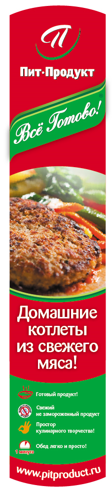Знаменитая финская полька стала главным мотивом рекламы полуфабрикатов"Пит-Продукт" продвигает новую линейку продукции "Всё готово!"С 21 марта по 30 апреля 2011 года компания "Пит-Продукт" проводит программу маркетинговой поддержки новой линейки готовых мясных продуктов "Всё готово!", включающую различные ATL и BTL-мероприятия. Творческая идея принадлежит отделу маркетинга. Цели программы маркетинговой поддержки - увеличение продаж новой продуктовой линейки, инициирование пробной покупки и привлечение новых покупателей, убеждение в высоком качестве готовых мясных продуктов и удобстве их потребления. С 1 апреля в вагонах всех линий Петербургского метрополитена появятся рекламные плакаты формата А3, которые подчеркнут такие свойства новых готовых мясных продуктов, как их свежесть, соответствие высоким стандартам качества, финские технологии производства, удобство потребления и быстроту приготовления. На радиостанциях "Европа Плюс", "Юмор FM", "Эльдорадио", "Авторадио", "Ретро FM" будут транслироваться ролики (20 и 30 секундные джинглы), в которых также обозначены основные преимущества готовых мясных продуктов. BTL-поддержка новой линейки продукции "Всё готово!" осуществляется в крупных торговых сетях - "Лента", "О'Кей", Prisma, "Карусель", "Перекрёсток". Она включает в себя размещение рекламных модулей в каталогах продукции магазинов, шелфбаннеров на полках и напольных стикеров, распространение рекламных листовок. Кроме того, компания "Пит-Продукт" и производитель кетчупов "Балтимор" (ООО "Юнилевер Русь") проводит совместную промо-акцию. Два известных петербургских бренда объединились, чтобы предложить покупателям промо-набор: котлеты "Классические" из линейки готовых мясных продуктов "Всё готово!" и в подарок к ним кетчуп "Балтимор Адмирал" (в упаковке 240 гр.). ![]() ![]() |