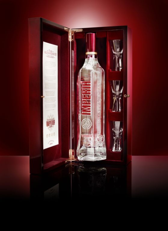 «Русский стандарт» выпустит водку в ста экземплярахКомпания "Русский Стандарт Водка" выпустила подарочный набор с водкой IMPERIA. Ограниченная серия подарочных комплектов тиражом 100 экземпляров стала доступна в ведущих международных аэропортах в марте 2011 года. Подарочный комплект, выполненный из особых сортов дерева, включает в себя бутылку с водкой IMPERIA объемом 1,75 литра и 3 эксклюзивных стопки. Ограниченная серия подарочных комплектов уже доступна в зонах беспошлинной торговли ведущих международных аэропортов - Дубая, Гонконга, Москвы (Шереметьево, Внуково, Домодедово).