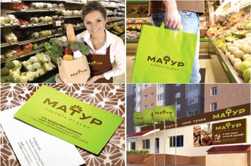 "Матур" в переводе с башкирского - красивый. Так с восхищением можно сказать и о девушке, и о цветке, и о магазине. Первый супермаркет сети с таким названием открылся в городе Стерлитамаке республики Башкортостан. Начальным этапом развития сети "Матур" станет открытие ряда магазинов внутри республики, в дальнейшем сеть будет развиваться и на российском рынке ритейла. Поэтому ценности и традиции, закладываемые в образ сети должны быть общими для башкир и русских людей. Таких общих черт не мало, но основной из них для создания концепции магазина была выбрана такая характеристика как душевность. Она включает в себя и гостеприимство, и теплоту, и открытость. Ведь магазин, как человек, - может привлечь внешней привлекательностью, но удержать - красотой внутренней, душевной. Именно красота души привлекает к себе, даря радость, спокойствие, уверенность и тепло. "Матур" - магазин с широкой душой - словно хлебосольный дом, излучающий дружелюбие и радушие. Здесь рады каждому и каждому готовы дарить внимание и заботу. В магазинах "Матур" - не покупатели, а гости, которых принимают по всем законам гостеприимства: с теплой улыбкой и открытым сердцем. Гостям "Матур" щедро предлагает изобилие всего самого лучшего, самого свежего и аппетитного. Эта идея выражена в слогане "Красота от души". В фирменном стиле используются естественные цвета: теплый уютный коричневый, цвет молодой зелени, белый. Фирменный знак представляет собой стилизованное соцветие курая - растение семейства зонтичных, национальный символ Башкортостана и дружбы народов живущих в Башкирии. Во внутреннем оформлении магазина используются натуральные материалы: дерево, рогожка, солома, предметы ручной работы: плетеные корзинки, сбитые вручную ящички, рисунки, сделанные от руки; фотоизображения людей с улыбающимися лицами, открытыми жестами, в ситуациях проявления внимания и заботы о покупателях; доски с написанными от руки текстами и ценами. В совокупности сложился целостный образ теплого, уютного, домашнего, дружелюбного - душевного магазина, излучающего спокойствие, доброту, заботу, открытого, дышащего человеческим теплом и радушием.
