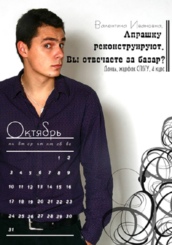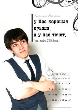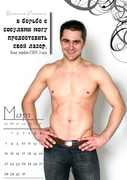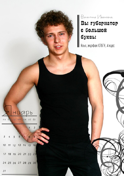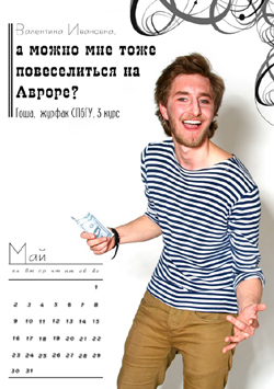 Первоапрельская шутка студентов СпбГу стала очень популярной в соцсетяхВопросы к Валентине Матвиенко оказались в темуПервого апреля группа студентов СпбГу сделала шуточный псевдоэротический календарь, в котором студенты мужского пола предлагают губернатору Петербурга помочь лазером в борьбе с сосулями, стремятся повеселиться на «Авроре» и хотят диалога с городом. Вопросы оказались неожиданно актуальными: в последовавшими за первым апреля выходными календарь оказался в топе большинства рейтингов записей российской блогосферы. Календарь был сделан по мотивам знаменитого эротическогокалендаря для Путина, сделанного студентками московского журфака.