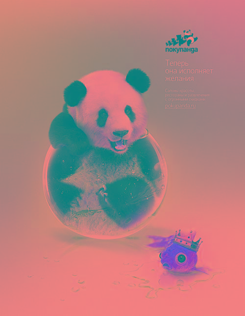 Покупанда - метис покупки и пандыРекламное агентство Ruport представляет принт сервиса совместных покупокКорпоративный персонаж проекта Покупанда - черно-белый медведь, который раздает выгодные предложения для своих друзей. "Покупанда исполняет любые желания, даже те, о которых пользователь еще и сам не знает, - раскрывают в агентстве особенности маркетинговой концепции. - За него ищет интересные развлечения, полезные услуги и отличные заведения по городу медведь Покупанда. А потом предлагает ими воспользоваться на своем сайте - pokupanda.ru". "Покататься на роликах, залезть на скалу, пострелять в лазертаг, сделать маникюр, нарастить волосы - все, что ты хотел попробовать, но не решался. Покупанда предлагает все это за такую цену, что невозможно отказаться. Чем больше у тебя будет желаний, тем больше их Покупанда сможет исполнить", - говорит менеджер по работе с партнерами "Покупанды".