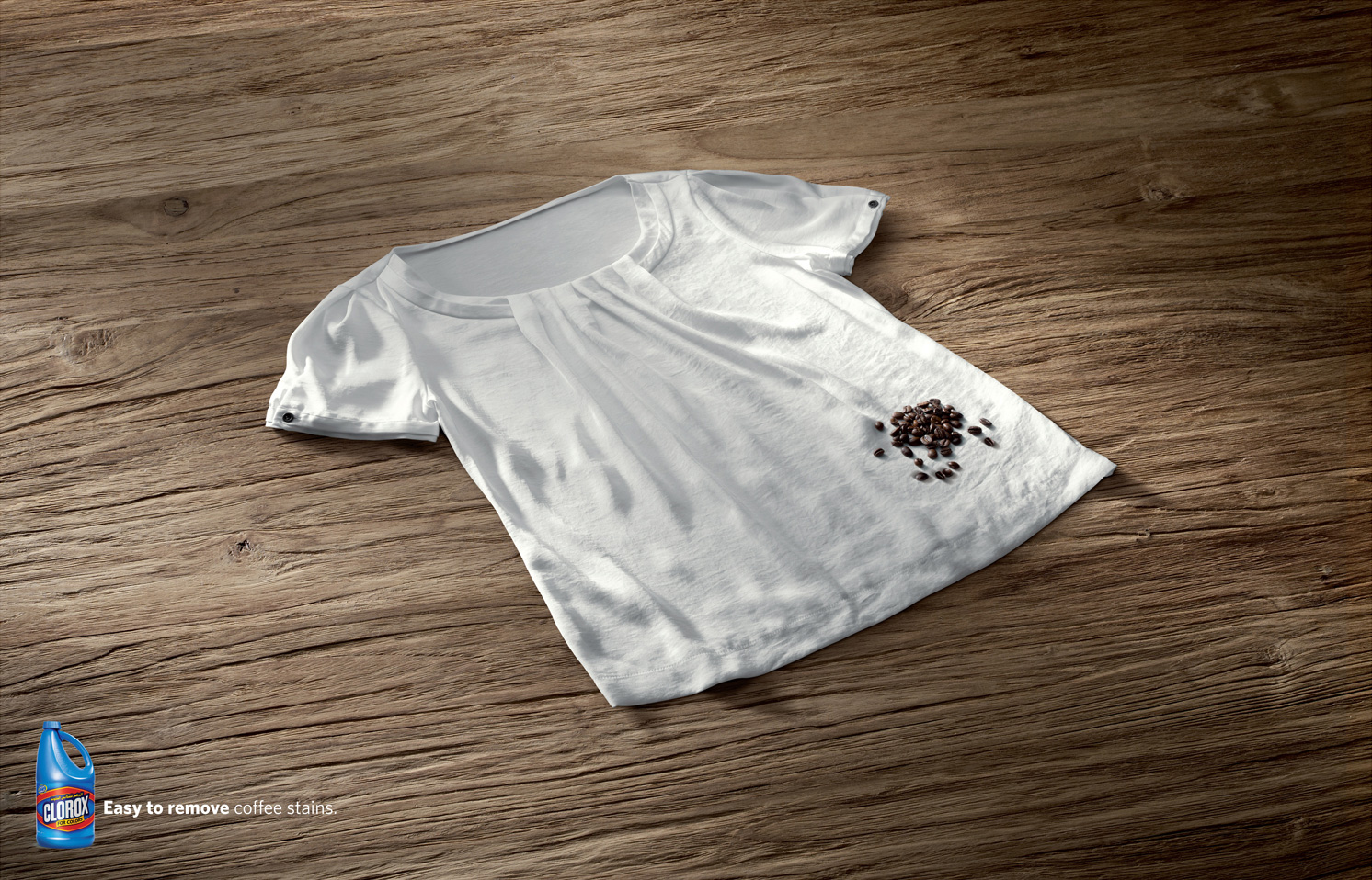 Clorox отделит рубашки от помидоровРеклама пятновыводителя обещает разобраться с любыми пятнамиКреаторы из дубайского DDB выпустили серию принтов для рекламы пятновыводителя Clorox, в буквальном смысле отдели в пятна от одежды. Реклама убеждает, что Clorox не просто выведет пятно, но сделает так, будто бы оно и вовсе не появлялось. Для этого агентство изобразило различные "загрязнители" вроде томатного сока, чернил или кофе в таком состоянии, в котором они просто не могут нанести какой-либо вред одежде.