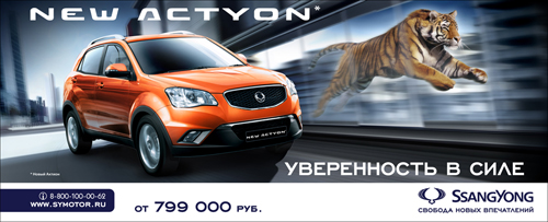 SsangYong добавил уверенностиСтартовавшая в марте рекламная кампания агентства FCB Media, входящего в холдинг Media Arts Group, направлена на поддержку начавшихся в 2011 году на территории РФ продаж принципиально новых внедорожников SsangYong NEW Actyon ("Новый Актион"), призванных стать первым шагом на пути к созданию нового модельного ряда бренда. В задачи агентства FCB Media входит организация кампании на национальных телеканалах, дополненная региональными поддерживающими ТВ-кампаниями в ключевых регионах, точечное размещение наружной рекламы с использованием "супер сайтов" и "брандмауэров", интенсивная кампания в прессе, а также насыщенная активность в Интернете с использованием ведущих порталов, новостных ресурсов, тематических и спортивных площадок.
