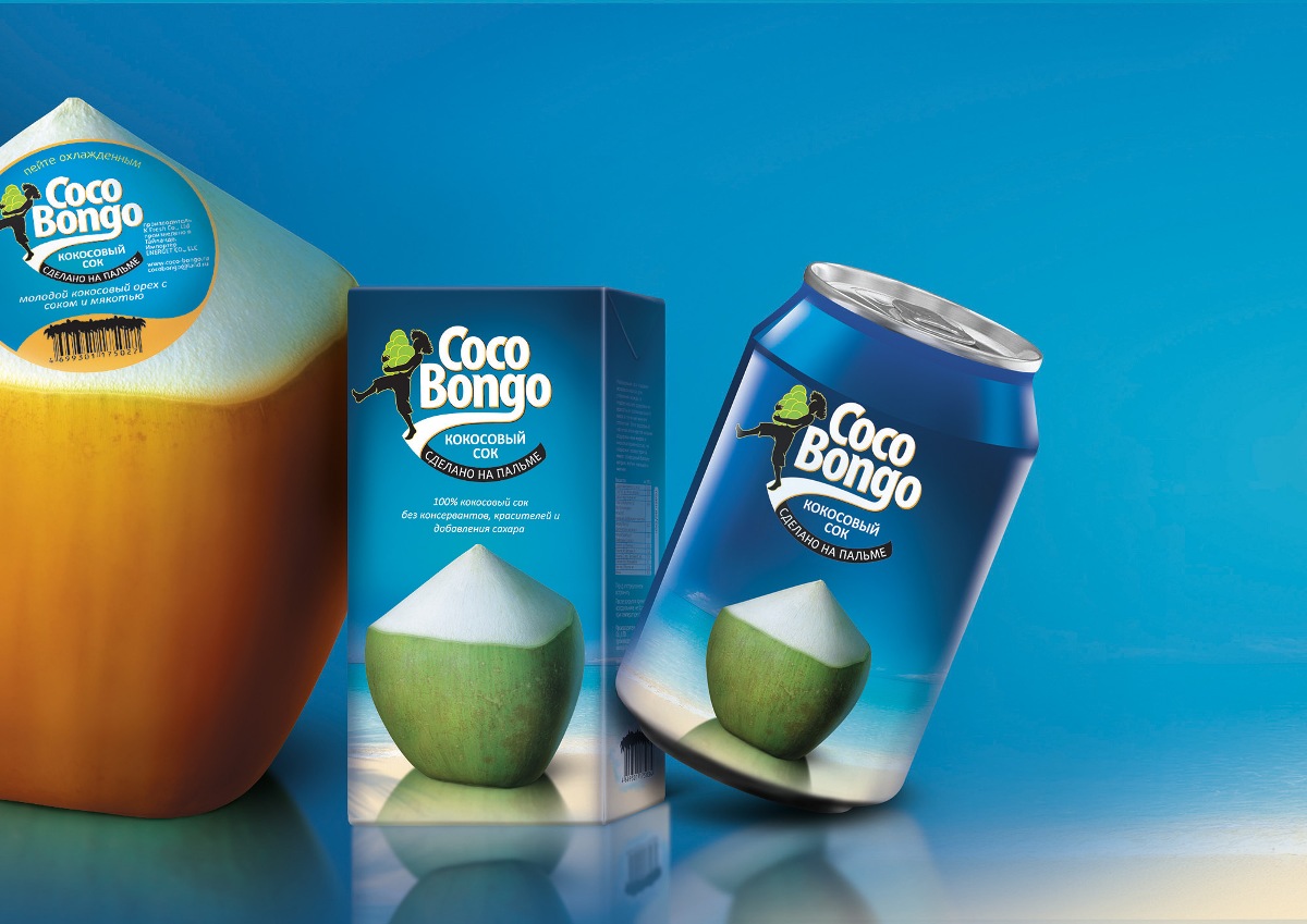 В любой упаковке кокосовый сок "Coco Bongo" - натуральный, освежающий и манящий.