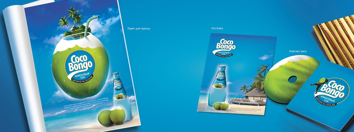 Фирменный стиль компании-импортера и упаковка кокосового сока Coco BongoРекламное агентство Ruport представляет фирменный стиль компании, которая занимается доставкой и реализацией кокосового сока из Таиланда.