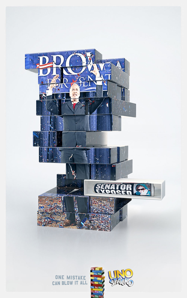 Игра UnoStacko научит избегать фатальных ошибокОшибки в жизни сравнили с неправильным ходом в сложной игреКолумбийское Ogilvy &Mather Bogota разработало рекламную кампанию интересной игры под названием UnoStacko. UnoStacko - это комбинация двух игр: карточной игры Uno, в которой надо избавиться от всех карт на руках в соответствии со сложной игровой комбинацией, и игры Jenga, в которой игроки должны строить башню их деревянных брусков постепенно перенося их из основания - наверх. Нетрудно понять, что правила UnoStacko достаточно сложны, и потому неудивительно, что рекламисты решили сравнить игру с жизнью, в которой одна ошибка может кардинально все изменить. Для примера они привели сложенные в стиле UnoStacko изображения кандидата в президенты, в которое затесалось видео с компроматом, королевы красоты, которая внезапно забеременела, и чемпиона, непрошедшего допинг-контроль. "Одна ошибка может уничтожить все", - резюмирует слоган рекламы. Состав творческой группы |
