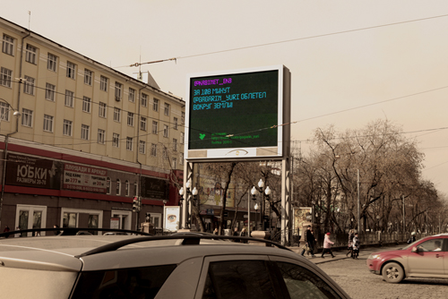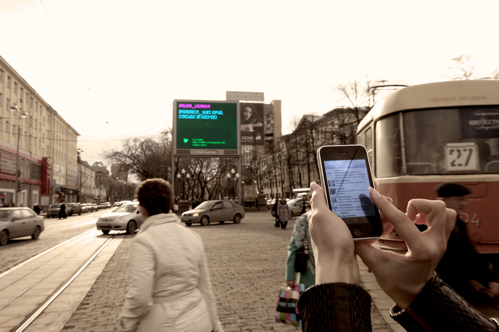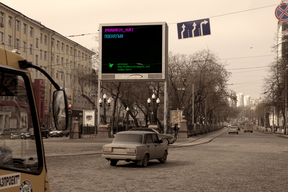 Гагарин и Твиттер11 апреля интернет-провайдер Кабinet начал транслировать ленту сообщений из twitter пользователя @gagarin_yuri, посвященную памяти первого космонавта. Во вторник, в День Космонавтики, весь город наблюдал активную переписку @gagarin_yuri с другими пользователями twitter. Трансляция шла на трех огромных видеоэкранах "Фьючер Медиа" в самом центре города в канун Дня Космонавтики. Таким образом Кабинет показал, как поддерживали бы первого космонавта, если бы 50 лет назад существовал интернет. |