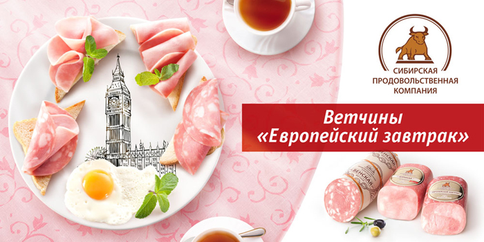 Реклама о «Европейском завтраке»Студия Redkvadratt для "Сибирской продовольственной компании" разработала рекламную кампанию для продвижения новой линейки ветчин "Европейский завтрак" и каталог продукции для B2B-пользования. Состав творческой группы