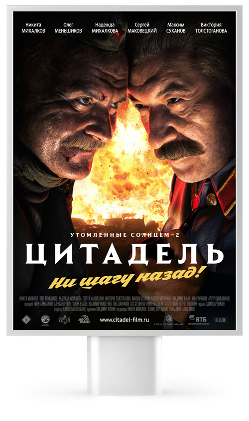 Студия Лебедева заставила Михалкова бодаться со СталинымСтудия Артемия Лебедева опубликовала рекламный плакат фильма «Цитатель»Студия Лебедева опубликовала рекламный плакат фильма «Цитадель» - третьей, окончательной серии фильма Никиты Михалкова «Утомленные солнцем». Рекламная кампания фильма еще начата, хотя до премьеры «Цитадели» осталось лишь две недели. Предыдущая серия «Утомленных солнцем» вышла в прокат летом прошлого года, и при производственном бюджете в 50 миллионов долларов не окупилась.