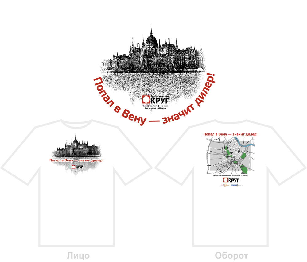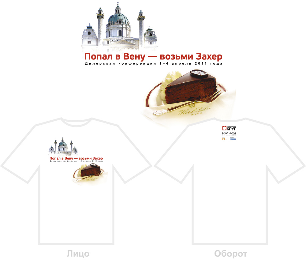 Попал в Вену - возьми ЗахерСтудия EPS Creative разработала серию креативных футболок для участников дилерской конференции сувенирной продукции в Вене. Заказчик и организатор конференции - группа компаний "КРУГ" - желал подарить атмосферу свободы и открытости для всех гостей мероприятия. Итогом стала юмористическая креативная концепция с провокационными слоганами, построенными на игре слов и поддержанными лаконичным, но броским дизайном. Состав творческой группы Креативное агентство: EPS Creative