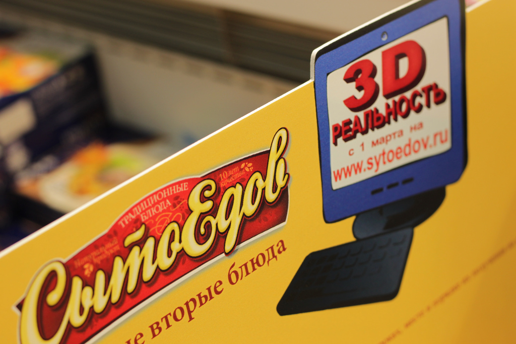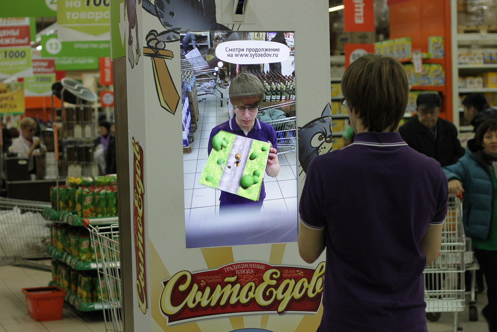 «Сытоедов» дополнил реальностьПроизводитель замороженных продуктов питания "Сытоедов" при участии Группы рекламных компаний ACG запустили кампанию по популяризации продукции с использованием технологии дополненной реальности. Чтобы привлечь максимально широкую аудиторию, была разработана простая по механике игра с шуточными мультяшными персонажами. Задача игрока заключается в том, чтобы объехать все препятствия на дороге, поворачивая коробку и управляя таким образом персонажем. Маркеры для дополненной реальности размещены непосредственно на упаковке замороженных продуктов. Поиграть в игру потребители могли непосредственно в точках продаж на специальных интерактивных POS-стендах. Так же в дополнение была разработана flash-версия с альтернативным развитием сценария игры, позволяющая потребителю поиграть дома. Разработкой и реализацией дополненной реальности для кампании занималась команда REDMADROBOT.