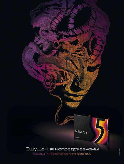 BBDO Moscow завершило демонстрацию наружки для 5FIVEРекламная кампания «Каждый чувствует вкус по-разному» проводилась в наружной рекламе и в макетах для прессы.Рекламная кампания бренда 5IVE REACT проходила в наружной рекламе в течение апреля 2011 года. Кампания обращала внимание потенциального потребителя на то, что для каждого человека вкус этой жевательной резинки ощущается индивидуально и проходила под слоганом «а какой вкус почувствуешь ты?» Для реализации макетов в прессу и для наружной рекламы BBDO выбрало испанского иллюстратора Габриэля Морено. Его задача заключалась в том, чтобы совместить в одном изображении серию из 6-8 картинок, так чтобы сначала все видели основной объект (портрет), а потом смогли разглядеть остальные детали Идея из нескольких объектов собрать целостную композицию пришла арт-директорам BBDO Moscow Роману Косову и Алексею Стародубову. – 5IVE – продукт, интересный своим позиционированием и историей предыдущих коммуникаций, – комментируют проект его авторы. – Бренд-команда изначально была ориентирована на построение образа в тесной связи с современным искусством. Были интересные проекты «Интерактивная галерея FIVE» и «Эксперимент 5IVE». Поэтому наша задача была поддержать это арт-направление. - Позиционирование 5IVE, ориентировнное на интеллектуальную высокодоходную аудиторию, определило каналы: интернет, наружная реклама, пресса и кинотеатры, - говорит Николай Кузнецов, руководитель медийной группы OMD Media Direction, занимавшейся размещением рекламной кампнаии. При этом, во всех каналах мы использовали нестандартные форматы, для того чтобы выделиться на фоне общего клатера и донести премиальное позиционирование бренда» - добавляет он. В наружной рекламе задействованы щиты 6х3 в Москве и 13 городах-миллионниках. Часть поверхностей в столице усложнили экстендерами и специальной подстветкой. В прессе размещение происходит в мужских глянцевых журнала (Maxim, Esquire, Men’s Health, GQ, Top Gear). Состав творческой группы: |