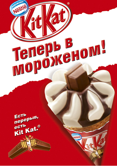 Nestle вывела на российский рынок KIT KAT рожокСейчас рекламная кампания мороженого проходит в наружной рекламе, а мае она перерастет в полно масштабную"Нестле Россия" вывела на российский рынок новый продукт - KIT KAT рожок. В мае 2011 Нестле планирует начать рекламную кампанию нового мороженого, разработанную а агентством Publicis United. Рекламная кампания включает в себя наружные медиа-носители: баннеры, ситиформаты и пиллары. В дальнейшем рекламная кампания также будет поддержана в Интернете. Размещение рекламных носителей осуществляет агентство Zenith Optimedia. Цель рекламной кампании - рассказать о новом мороженом KIT KAT, подчеркнув уникальность продукта, его высокое качество и оригинальный вкус. Наружная реклама "Теперь в мороженом!" полностью отражает основную концепцию продукта: шоколадный батончик KIT KAT в мороженом - отличный десерт для любителей и шоколада, и мороженого. "Новое мороженое KIT KAT - в своем роде уникальный продукт", - говорит Андрей Кутузов, менеджер по торговой марке департамента мороженого компании "Нестле Россия". Это любимый миллионами потребителей по всему миру фирменный шоколадный батончик внутри хрустящего вафельного рожка. И это грандиозная новость для поклонников мороженого! Целевая аудитория мороженого KIT KAT активные и динамичные людей, которые любят побаловать себя вкусным мороженым или утолить голод,, особенно в жаркие летние месяцы. В Европе это мороженое появилось еще в 2009 году. Состав творческой группы: