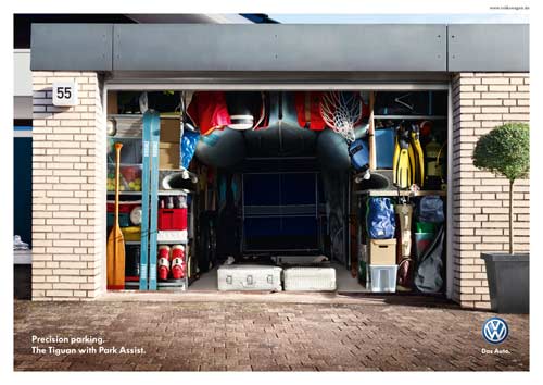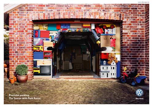 Самая точная парковка - только с VolkswagenСамые тесные гаражи в рекламе автомобилей с системой Park AssistНи для кого не секрет, что точная парковка - это серьезное испытание для многих водителей. Поэтому концерн Volkswagen оборудовал новые модели своих авто системой, помогающей водителю припарковаться в ограниченном пространстве, под названием Park Assist. Эта система позволяет припарковать автомобиль в самых невероятных условиях, в которых на первый взгляд, невозможно найти лазейку для своего авто - даже в забитом до отказа тесном гараже. Эта тема и стала ключевой для рекламного агентства Grabarz & Partner из Гамбурга. Креторы показали гаражи, настолько заполненные вещами, что автомобиль туда можно втиснуть только под его силуэт. Идея выражена великолепным образом, но остается вопрос - как же водитель будет выбираться из машины?