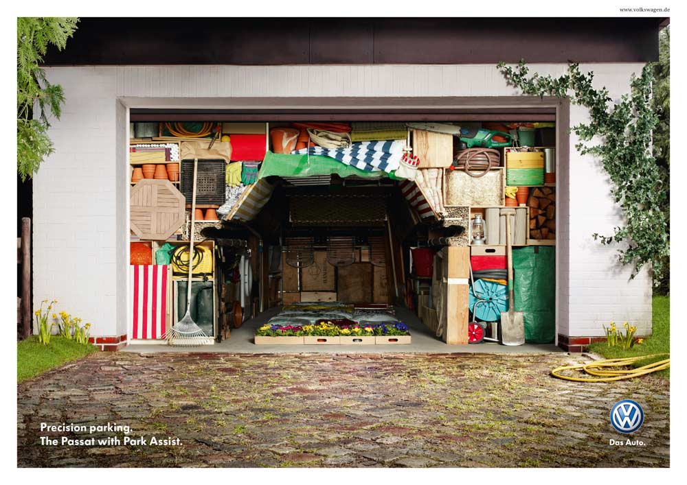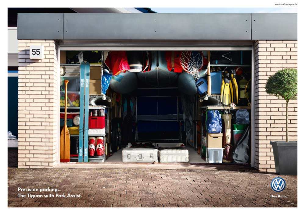 Самая точная парковка - только с VolkswagenСамые тесные гаражи в рекламе автомобилей с системой Park AssistНи для кого не секрет, что точная парковка - это серьезное испытание для многих водителей. Поэтому концерн Volkswagen оборудовал новые модели своих авто системой, помогающей водителю припарковаться в ограниченном пространстве, под названием Park Assist. Эта система позволяет припарковать автомобиль в самых невероятных условиях, в которых на первый взгляд, невозможно найти лазейку для своего авто - даже в забитом до отказа тесном гараже. Эта тема и стала ключевой для рекламного агентства Grabarz & Partner из Гамбурга. Креторы показали гаражи, настолько заполненные вещами, что автомобиль туда можно втиснуть только под его силуэт. Идея выражена великолепным образом, но остается вопрос - как же водитель будет выбираться из машины?