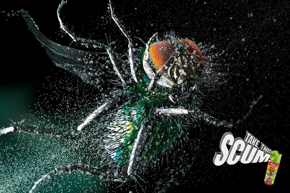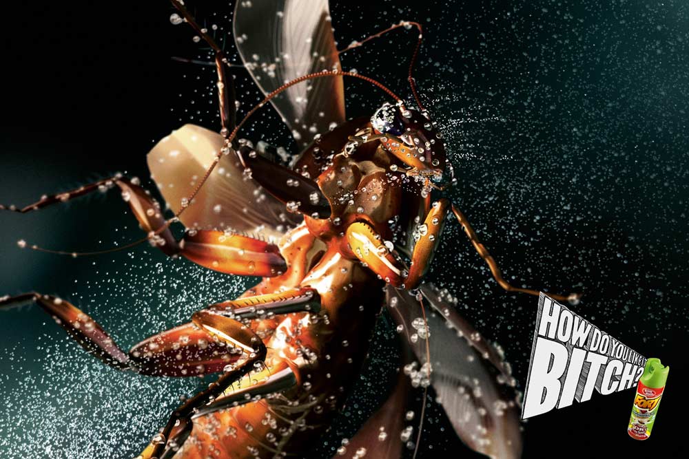 Креативное агентство DPZ Propaganda из Сан-Паулу выпустило весьма эмоциональную рекламную кампанию для средства от насекомых Fort. На принтах креаторы крупным планом изобразили таракана, комара и муху, которых обрызгивают из баллончика с инсектицидом. Каждый принт сопровождается бросовой фразой, отличающейся высокой степенью негатива по отношению к насекомым: