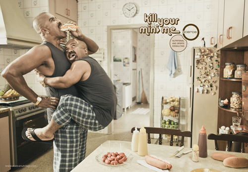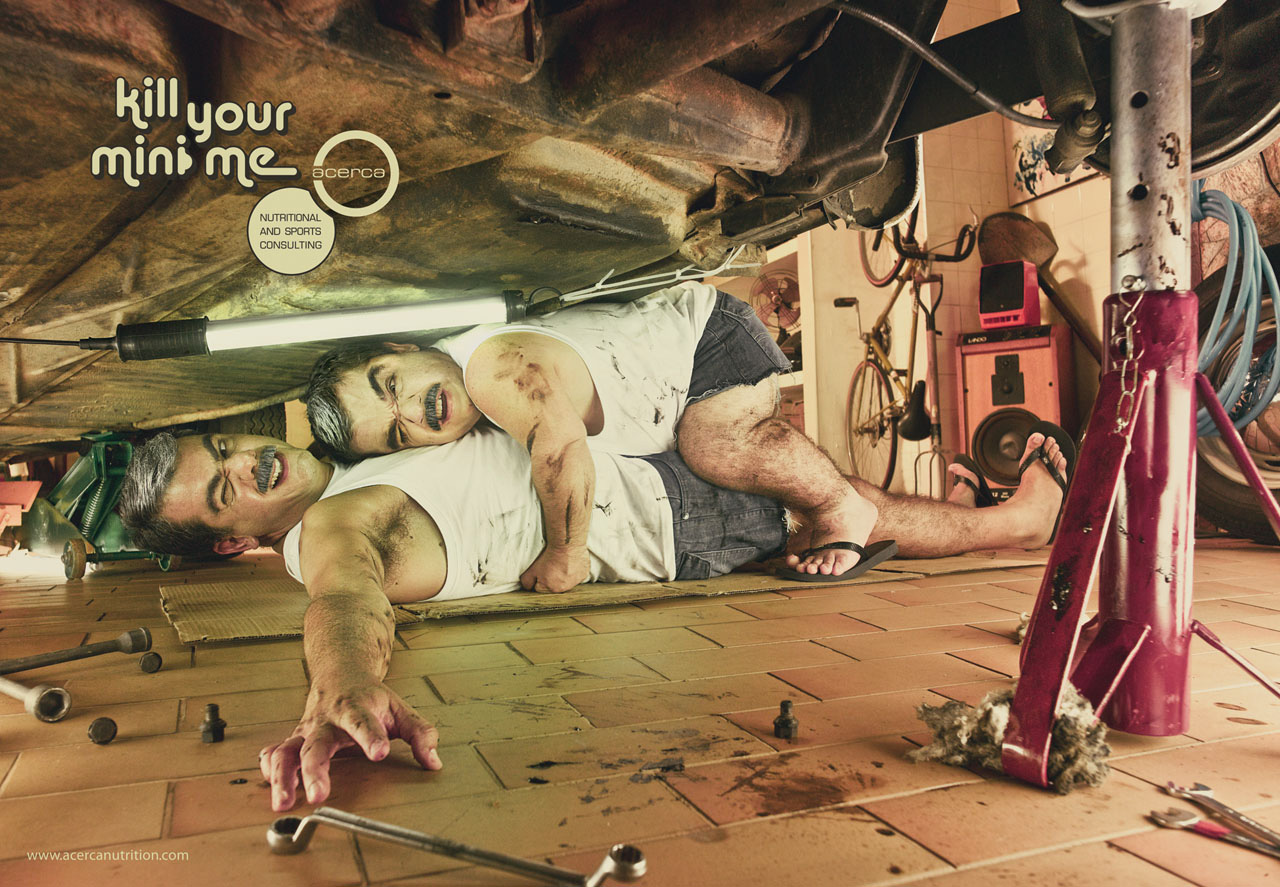 Толстый живот сравнили с уменьшенной копией его владельцаРеклама компании Acerca призывает убить своего "злого близнеца"Агентство Giovanni+Draft FCB из Сан-Паулу разработало печатную кампанию для компании Acerca, которая дает консультации по правильному питанию и занятиям спортом, помогая людям справиться с избыточным весом. Кампания ориентирована на мужчин и потому креаторы показали толстый живот в образе уменьшенной копии его обладателя, которой дали прозвище "mini me" или "мини я". Реклама нелицеприятно изображает мужчин в объятиях их злого мини-близнеца, который не только отталкивающе выглядит, но и мешает работать и заниматься сексом. "Убейте своего "мини я", - призывает реклама, добавляя, что Acerca дает консультации по питанию и спорту.