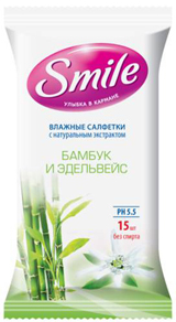 Новый дизайн влажных салфеток Smile отличается сочными чистыми цветами, яркими изображениями, новым, более современным логотипом. Все элементы дизайна гармонично сочетаются, создавая целостное восприятие торговой марки. Новый дизайн придает визуальному стилю Smile оригинальность и современность, делает торговую марку более узнаваемой. Слоган "Улыбка в кармане!" отражает эмоции при использовании продукта, создает позитивный настрой, делает каждый день приятней и радостней.